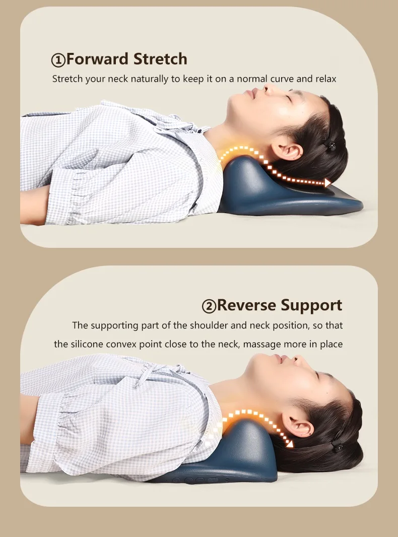 Experience ultimate neck and shoulder relief with the EMS Pulse Neck Pillow Massager. This innovative device combines electrical muscle stimulation (EMS) technology, heating, and vibration to deliver an effective, multi-functional solution for neck pain and muscle tension. Designed to target the cervical spine, it helps stretch and relax tight muscles, promote circulation, and alleviate discomfort. The electric cervical stretcher and vibration massage work together to release built-up tension, while the heating function adds soothing warmth for extra comfort. Perfect for daily use at home, this pillow massager helps relieve stress, improve posture, and support cervical chiropractic traction for healthier, more relaxed muscles.